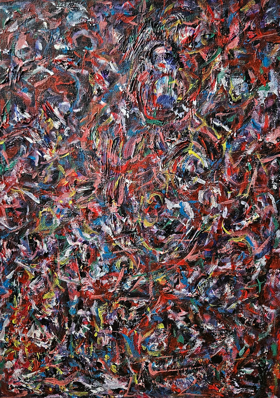 This work feels like a hot summer breeze moving through a mind that has stopped fighting its own chaos. It opens wide - intimate yet expansive - looking out across the savannah of an interior landscape that is unapologetically wild. There is no attempt to tame what lives there. Instead, the painting rests in it. The intensity remains, but it is no longer suffocating; it is atmospheric, alive, and strangely calm.